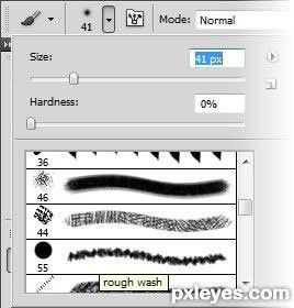 Шаг 34. Жмем клавишу B и выбираем кисть Rough Wash из набора M Brushes