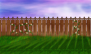 Прим.переводчика: Если тень на заборе получается слишком тёмной, то можно уменьшить непрозрачность этому слою с тенью до 15-20%.
