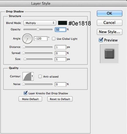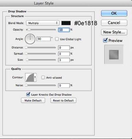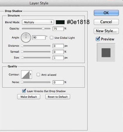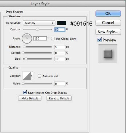 Создайте копию слоя с кругом и измените его цвет на #c9c8c8. Удалите прежние стили через контекстное меню слоя, верните Заливку (Fill) на 100% и примените Тень (Drop Shadow):