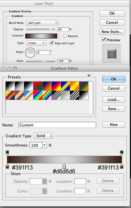 Добавьте узоры металлической сетки в Фотошоп. Примените следующие стили: