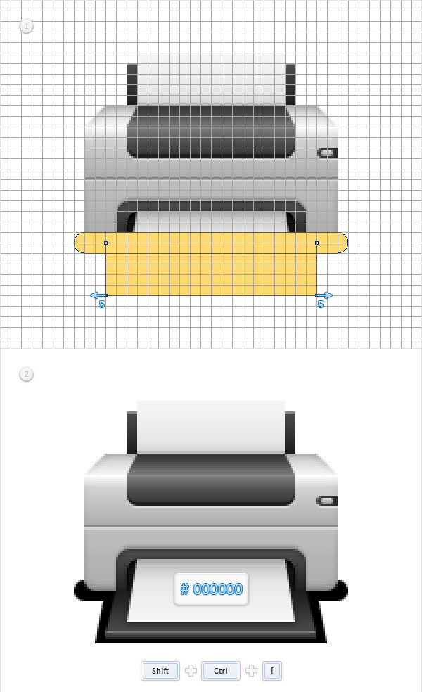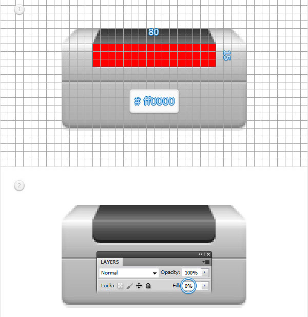 (Rectangle Tool) и нарисуйте фигуру размером 80 х 15 пикс.. Разместите её по центру на верхней панели принтера.