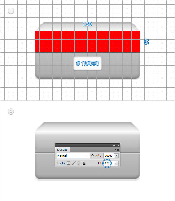 (Rectangle Tool) все ещё активен. Нарисуйте, на новом слое, фигуру 120 х 35 пикс., и поместите ее, как показано на первом изображении ниже.