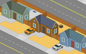 Сделайте это дважды, чтобы получить три дома. Этого должно хватить для достаточно большого квартала.