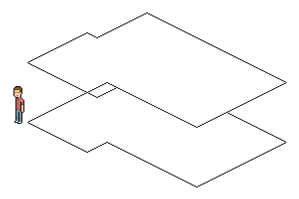Определимся с высотой этажа и пропорциями. Для удобства рисуем простого персонажа, от размеров которого и будем отталкиваться.