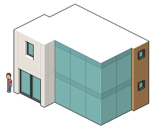 В предыдущих уроках мы создали героя в технике пиксель-арт, построили ему дом, подарили машину. В этом уроке я предлагаю вам построить ему офисное здание для работы.