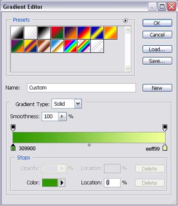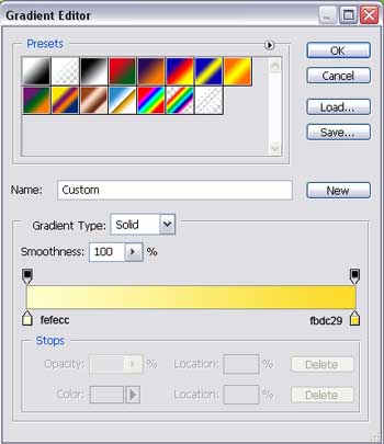 Щелкните по линии градиента и установите следующие параметры: