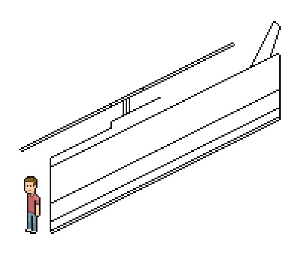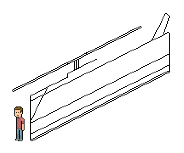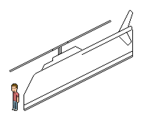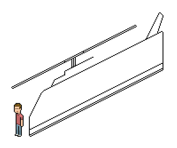 Чтобы завершить контур кабины, давайте добавим диагональную линию от низа к низу. Она очень крутая и выглядит немного рваной. Обычно лучше этого избегать, но мы нарисуем ее в пропорции 4:1, поэтому она будет выглядеть не такой резкой.