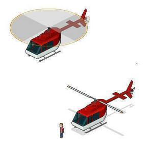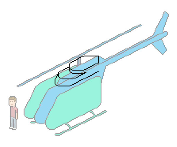 Давайте завершим рисунок, придав вертолету два состояния: он может находиться либо на земле (в таком случае он должен отбрасывать тень), либо в воздухе, тогда его винты должны крутиться.