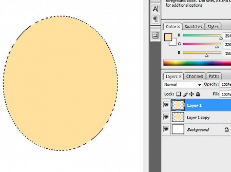 (Elliptical Marquee Tool) и залейте цветом #fedb90, как на картинке ниже.