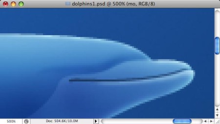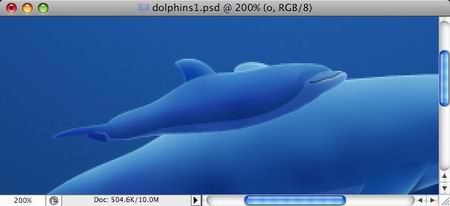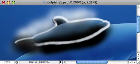 Теперь сделаем края немного подсвеченными, и небольшой мягкой кистью пройдёмся по краям дельфина (на новом слое).