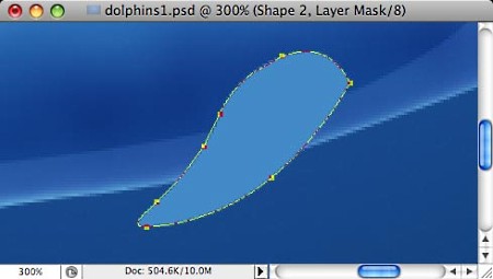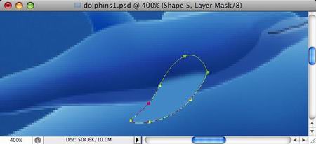 Затем, создайте обтравочную маску в меню Слой (команда Create Clipping Mask в меню Layer)(Ctrl-Shift-G в палитре слоёв Layer), теперь контур брюшка ограничен контуром тела дельфина.