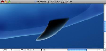 чёрного цвета нарисуйте тень от маленького дельфина. Подкорректируйте Ластиком