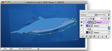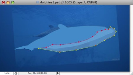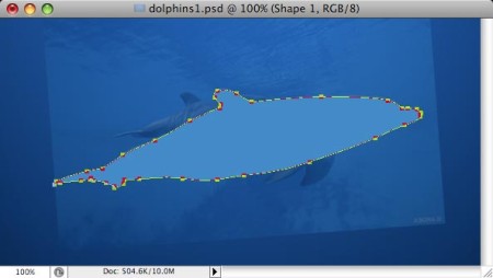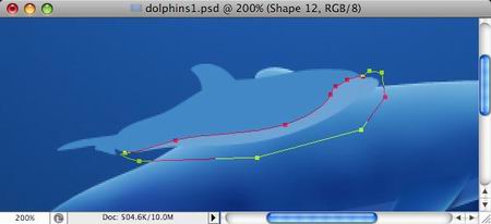 (Pen) и тщательно обрисуйте контур тела большого дельфина.