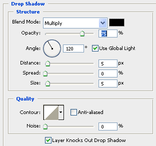 Шаг 27. Откройте функцию Layer Style «Стили слоя» и выберите команду Drop Shadow «Тень». Задайте те значения, которые Вы видите на рисунке: