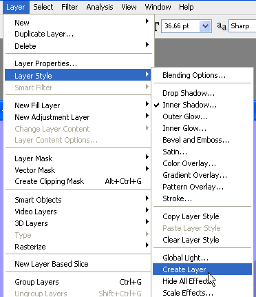 Шаг 38. Войдите в меню Layer > Layer Style > Creatе Layer (cлой - cтиль слоя - образовать слой).