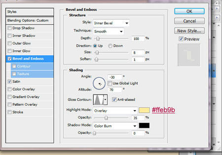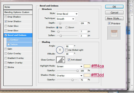 Шаг 4. Добавьте следующие стили слоя, чтобы получить такой эффект: