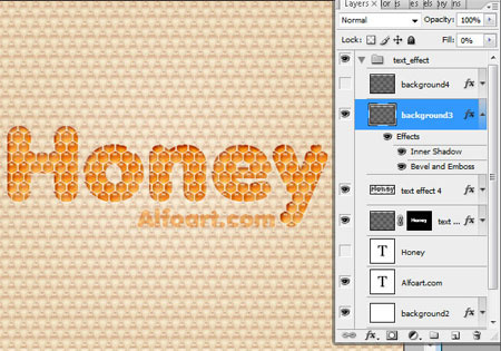 Шаг 3. Создайте новый слой над слоем с текстом и заполните его узором сотового мёда.