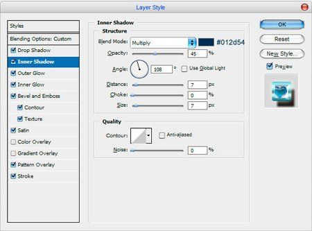 Inner Shadow (Внутренняя тень) - Multiply (Умножение), цвет #012d54