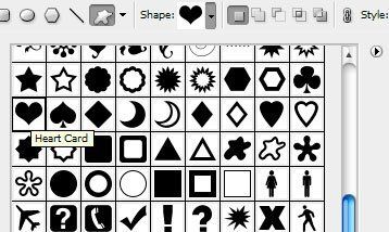 Теперь самое время добавить к нашему тексту фигуру сердечка. Используем инструмент Custom Shape Tool
