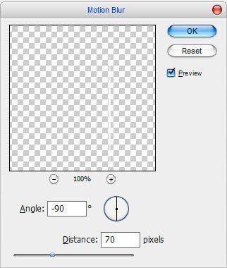 Снимите выделение с помощью Ctrl+D и примените фильтр Filter > Blur > Motion Blur (Фильтр-Размытие-Размытие в движении), Angle (Угол) - 900, Distance (Смещение) - 70.