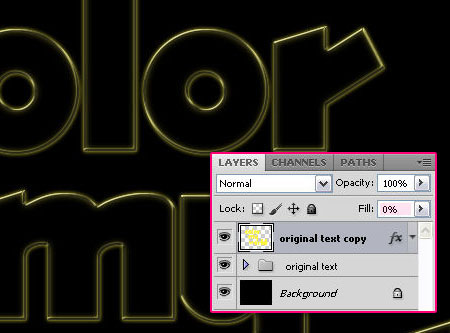 После того, как Вы закончите с настройками, необходимо изменить слою «original text copy» Fill (Заливка) на 0%.