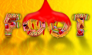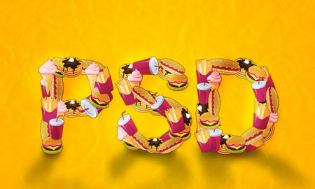 Шаг 5. Теперь нам понадобятся иконки еды. Из загруженного набора вставьте иконки в наш документ внутрь текста. При помощи инструмента Свободное трансформирование (Ctrl + T) можно изменить их размер. К каждому слою иконки примените стиль Обводка (Stroke).