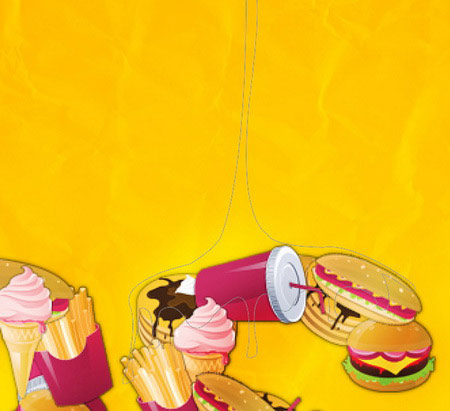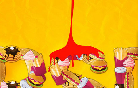 Шаг 16. Создайте новый слой поверх остальных и назовите его “ketchup shading”. Сделайте выделение слоя с кетчупом (удерживая клавишу Ctrl, кликните на иконке слоя) и чёрной кистью