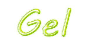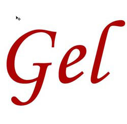 Автор написал слово "Gel" округлым шрифтом и бордовым цветом #AC0303.