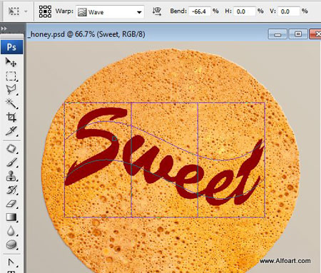 Поиграйте с деформацией (warp), чтоб создать более натуральный рукописный и стекающий текст. Или же вы можете сами нарисовать сладкий текст кистью