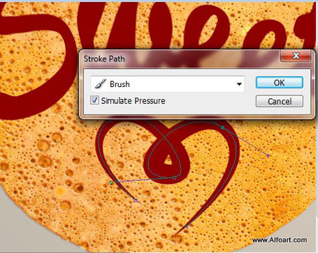 (brush), поставив галочку на Динамике формы в Палитре кистей, затем кликните правой кнопкой мыши по контуру и выберете Обводка контура (Stroke Path), не забудьте галочку на Имитировать нажим (Simulate Pressure).