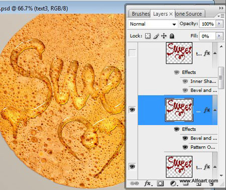 Загрузите изображение силуэта капель меда. Создайте медовый эффект, как мы это делали для слоя с текстом.