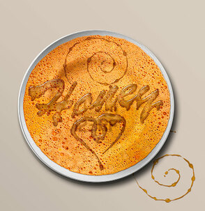 Блин и надписи на нем смотрятся плоско, нужно положить его на тарелку.
