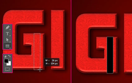 . Рисуем прямоугольник на первой букве. Используйте такую ширину ленты, чтобы она не занимала более 50% площади выбранного участка буквы.