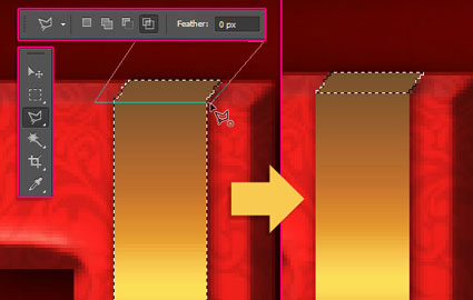 Нажмите Ctrl + щелкните на слой с лентой, чтобы создать выделение еще ??раз. На этот раз, используйте "Прямолинейное лассо\Polygonal Lasso"