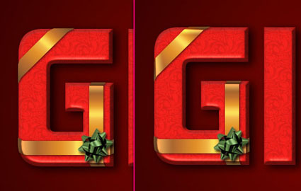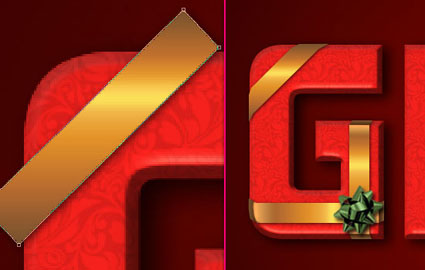 Данный шаг не обязателен. Но вы можете добавить ленту в верхнем левом или правом углу некоторых букв. Чтобы сделать это, создайте новый прямоугольник на новом слое, применить стиль слоя "Лента" к нему. Повернуть прямоугольник, и измените его угол.