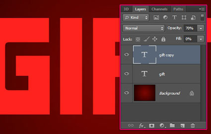 Создайте новый слой между слоями "Текст оригинал" и "Текст копия". Назовите новый слой "Текстура\Texture". Режим наложения для этого слоя установите "Жесткий свет\ Hard Light ", "Непрозрачность\ Opacity" - 25%.