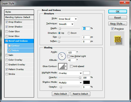 Тиснение (Bevel and Emboss):