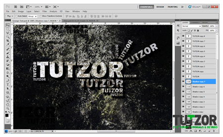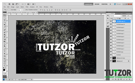 На следующем этапе создаем дубликаты текстового слоя и перемещаем, вращаем, меняем размер так, как мы этого хотим. Создайте копии вашего текста. Обратите внимание на изображение, чтобы понять, что мы сделали.