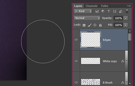 (Pen Tool) сделайте изгиб, как показано на скриншоте ниже розовым цветом. Затем установите цвета в цветовой панели: Цвет фона: Белый Цвет Переднего плана: (#7c28ca) Цвет фона: (#ffffff). После того как вы сделали линии, кликните правой клавишей по холсту и выберите пункт “Выполнить обводку контура” (Stroke Path) и нажмите ок.