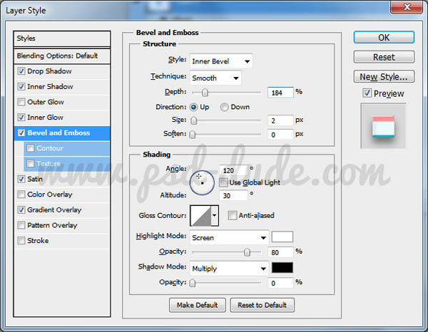 Дублируйте текстовый слой и назовите копию Text 2. Примените следующие настройки для этого нового текстового слоя.