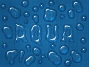 Напишите текст "Aqua" (для написания текста был использован шрифт Impact). растрируйте текст: кликните правой кнопкой мыши по слою с текстом в палитре Слои и выберите пункт Растрировать текст (Rasterize). После этого, жесткой круглой кистью прорисуйте форму букв, придав им вид воды. Если ошиблись, сотрите нужные участки ластиком (Е).