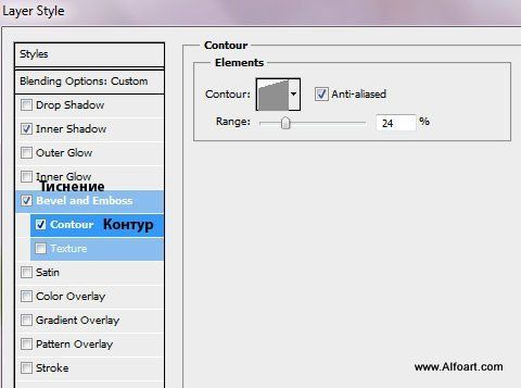 Спасибо за урок. У меня вопрос: в самом начале мы объединили слои и получили 1 слой, его дублируем и применяем стили слоя по списку. Так вот, как только я добрался до скриншота "Контур" то там применяется контур которого у меня нет ни в наборе ни в исходниках к уроку. Подскажите пожалуйста, могу ли я его заменить или где его взять. Заранее благодарен за ответ