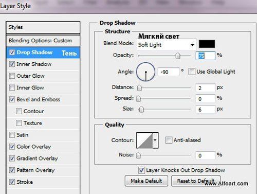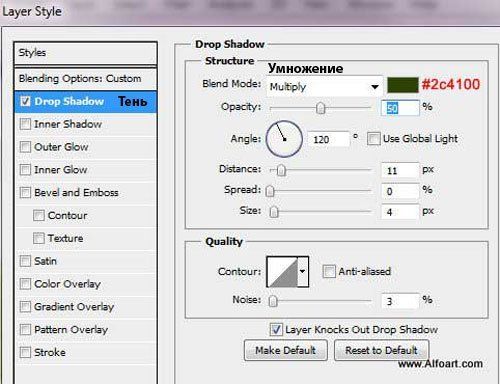 Поиграйте с Непрозрачностью (Opacity) слоя, чтобы получить наиболее подходящую естественную тень: