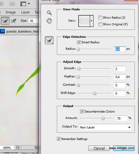 Идём Выделение – Уточнить край (Select > Refine edge), чтобы откорректировать и сгладить контур активного выделения.