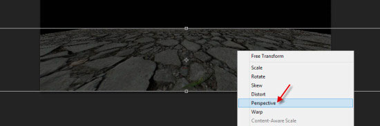 Скопируйте и вставьте выделение в наш документ, затем используйте инструмент Свободное трансформирование (Free Transform), чтобы применить перспективу к выделению:
