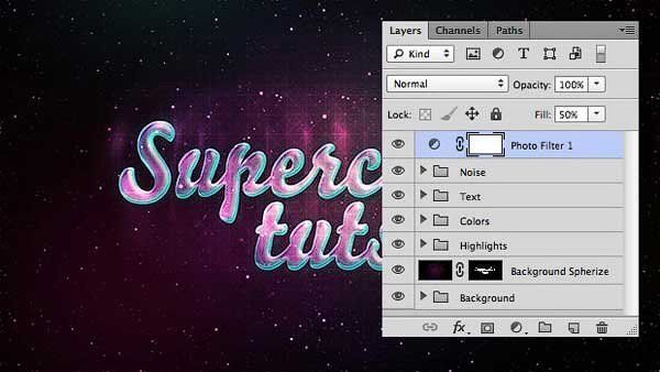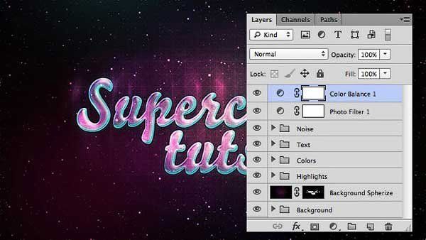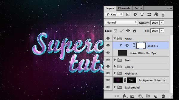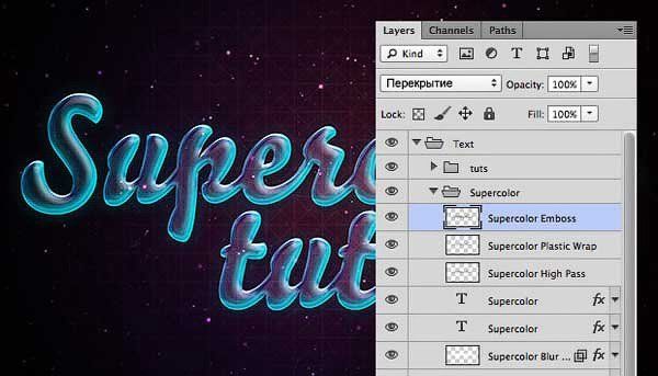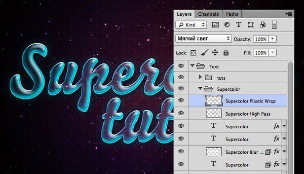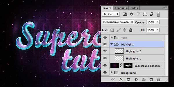 Поместите этот слой и все слои, созданные в шаге 5, в новую группу (Ctrl+G) и переименуйте её в Text.