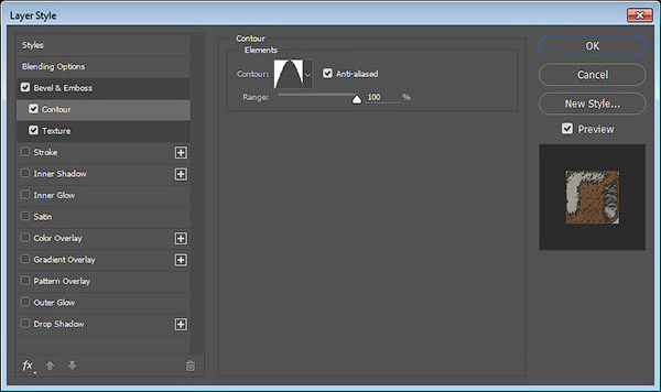 Примените следующий стиль слоя Контур (Contour) со следующими настройками:
