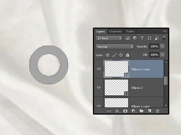Итак, мы применили стилизацию ко второму дубликату слоя с кольцом. Скопируйте / вклейте стили слоя к слою Эллипс 2 копия (Ellipse 2 copy).
