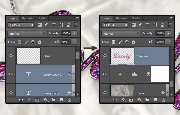 В этом уроке мы провели световую коррекцию атласной ткани, создали пару слоёв с текстом, стилизовали их, чтобы создать основной эффект.