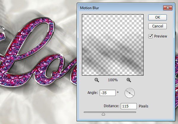 Идём Фильтр – Преобразовать для Смарт-фильтров (Filter > Convert for Smart Filters), а затем идём Фильтр – Размытие - Размытие в движении (Filter > Blur > Motion Blur). Поменяйте Угол (Angle) на -35, а значение Смещения (Amount) на 115.